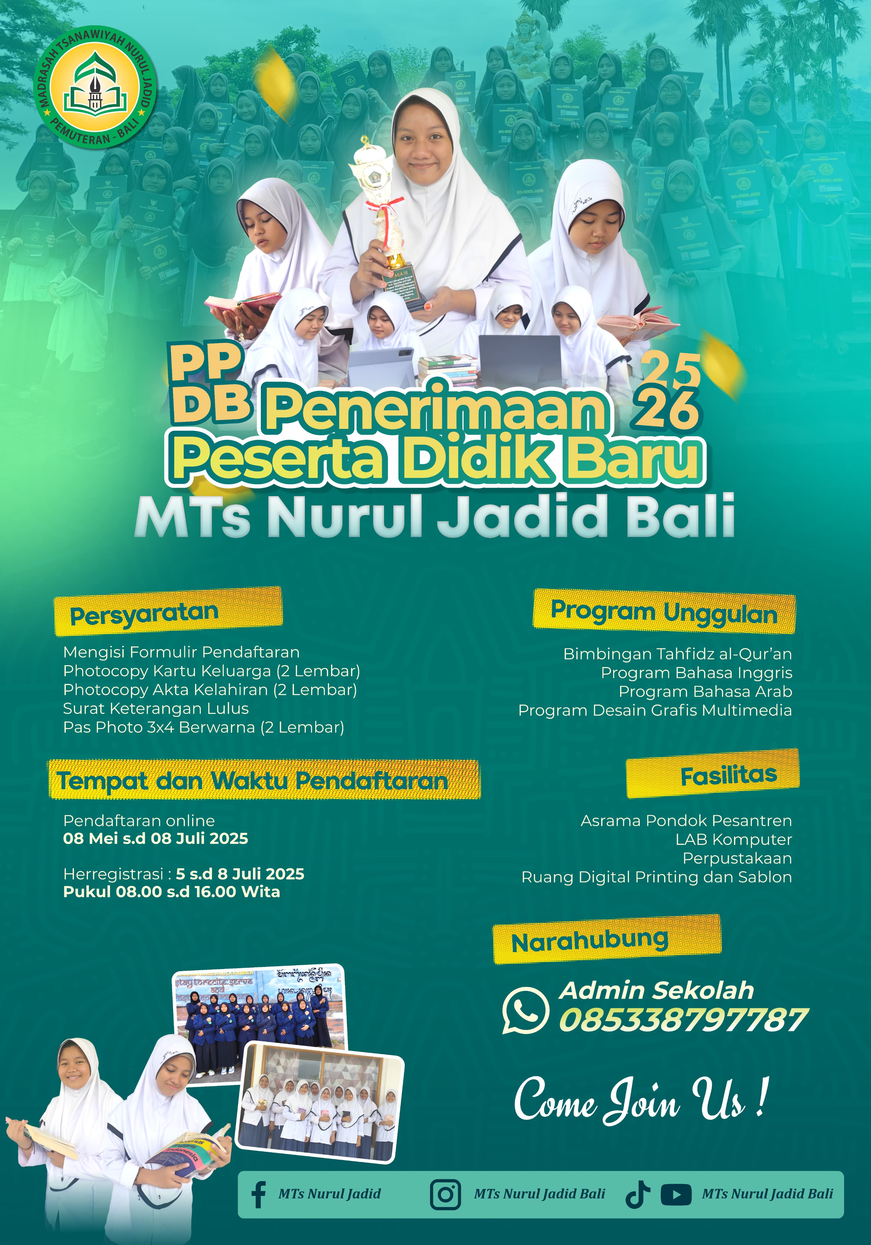 Penerimaan Peserta Dididk Baru MTs Nurul Jadid Th.2025/2026